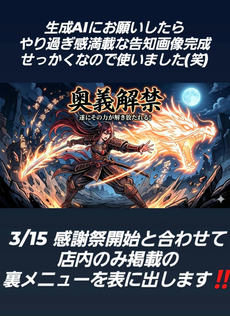 ※営業時間変更などのお知らせはSNS、ホームページにてお知らせしております